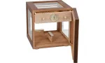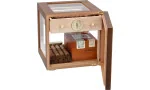 Хьюмидор в форме куба впечатляет **теплым ореховым шпоном и застекленной по всему периметру конструкцией, которая всегда позволяет видеть вашу ценную коллекцию сигар. Позолоченные петли и две квадратные золотые ручки на выдвижном ящике придают хьюмидору эксклюзивный вид. Незаметное отверстие на дверной раме позволяет легко открывать застекленную дверцу.