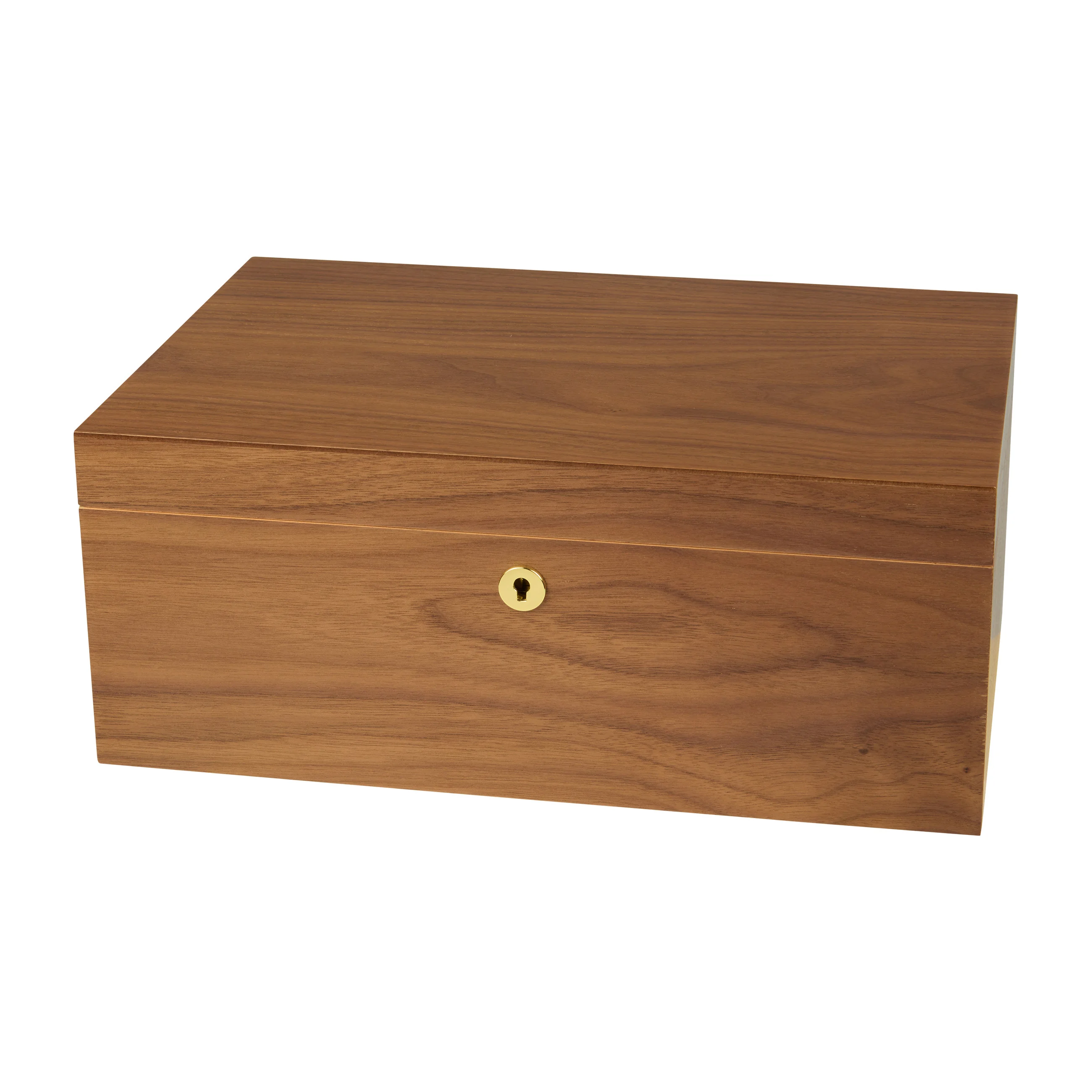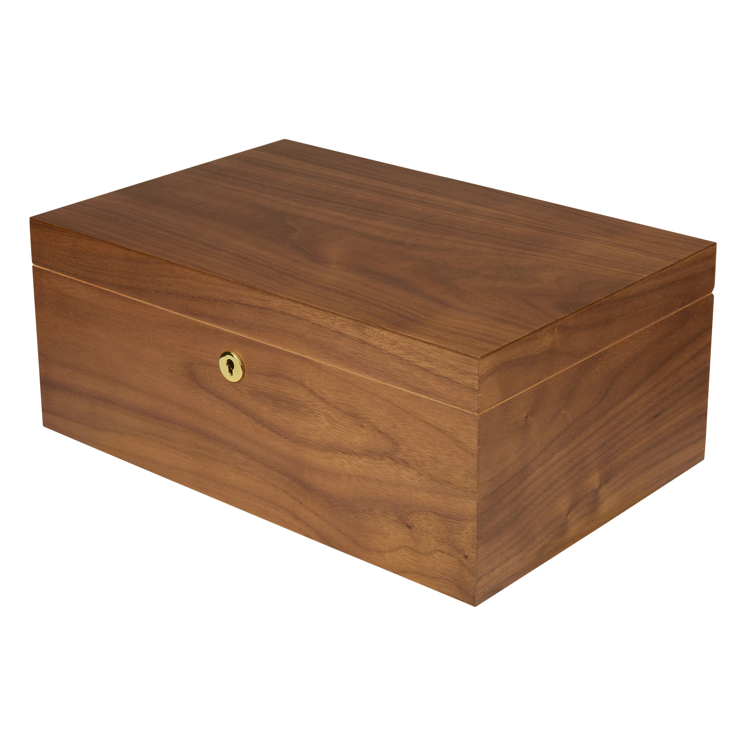 The walnut wood is distinguished by its characteristic grain with warm to dark brown tones. Thanks to its warm and natural appearance, the humidor blends harmoniously into almost any setting. Grande humidors hold up to 150 cigars, providing ample space for your cigar collection.