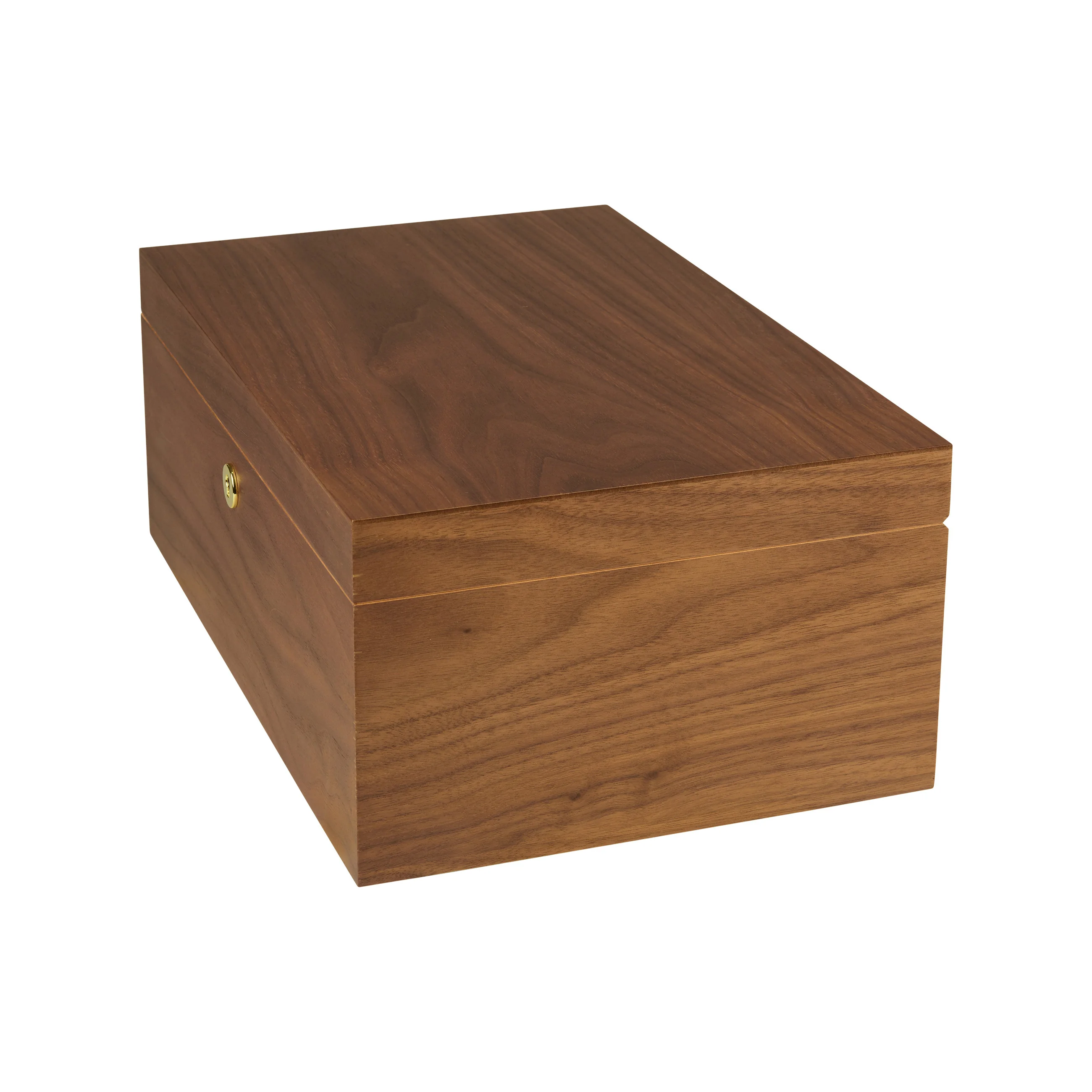 The adorini Humidor Ancona Walnut Grande Deluxe is an elegant Grande-size humidor that impresses with its attractive walnut veneer. Slight variations in grain and color highlight the natural character of the real wood veneer and make each humidor unique.