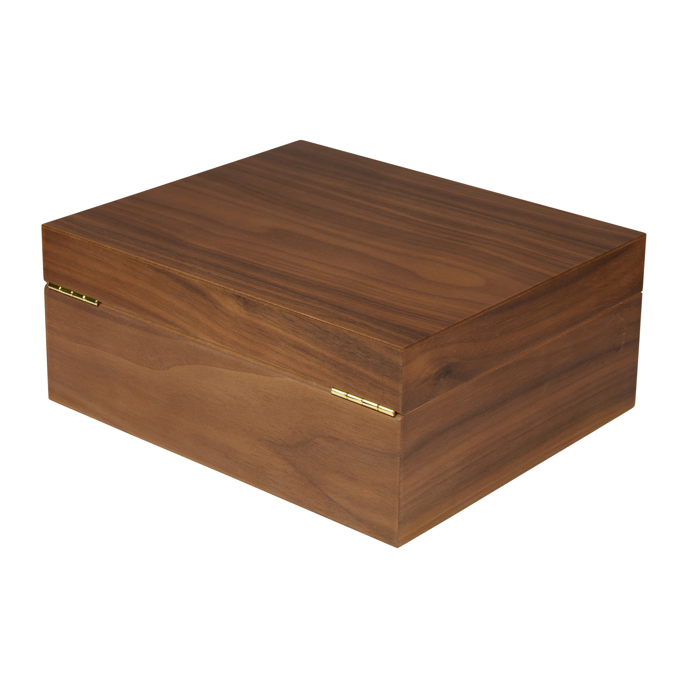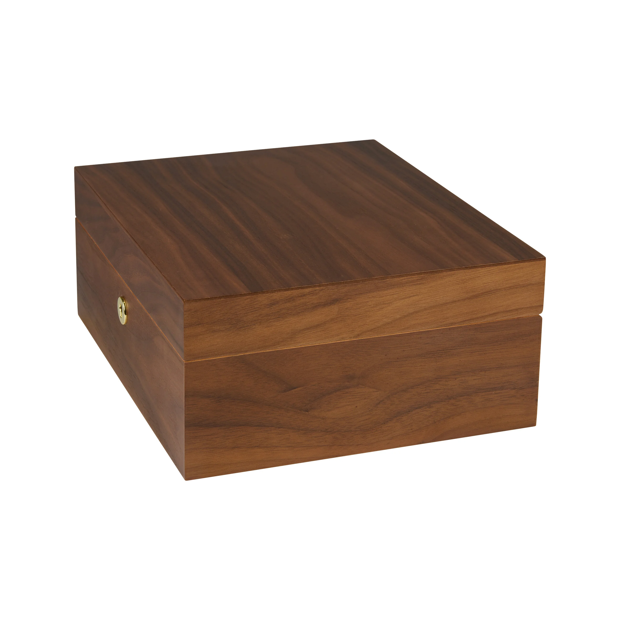 The walnut wood is distinguished by its characteristic grain with warm to dark brown tones. Thanks to its warm and natural appearance, the humidor blends harmoniously into almost any setting. Medium-sized humidors hold up to 75 cigars, providing ample space for your cigar collection.