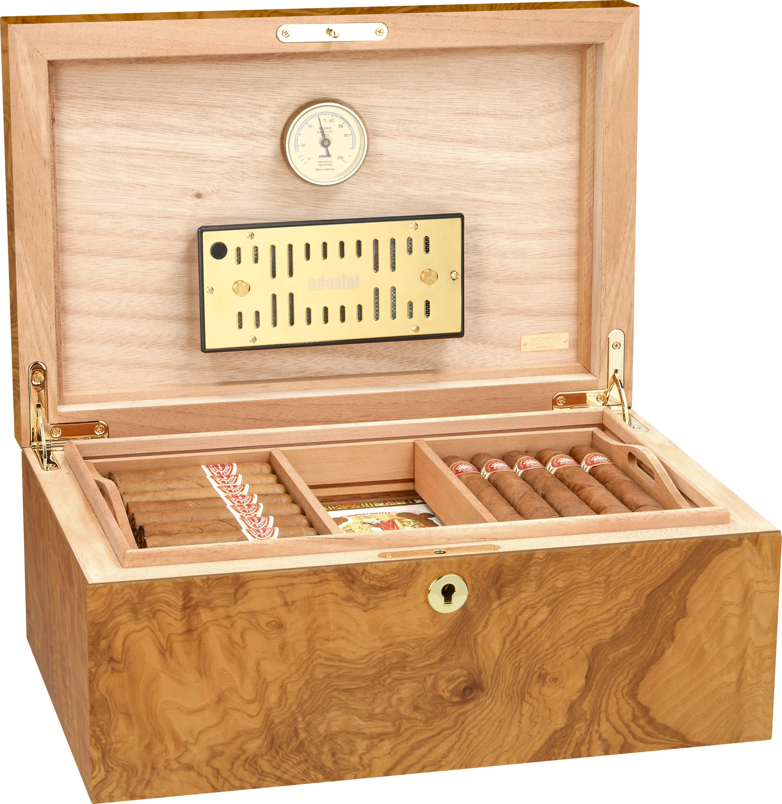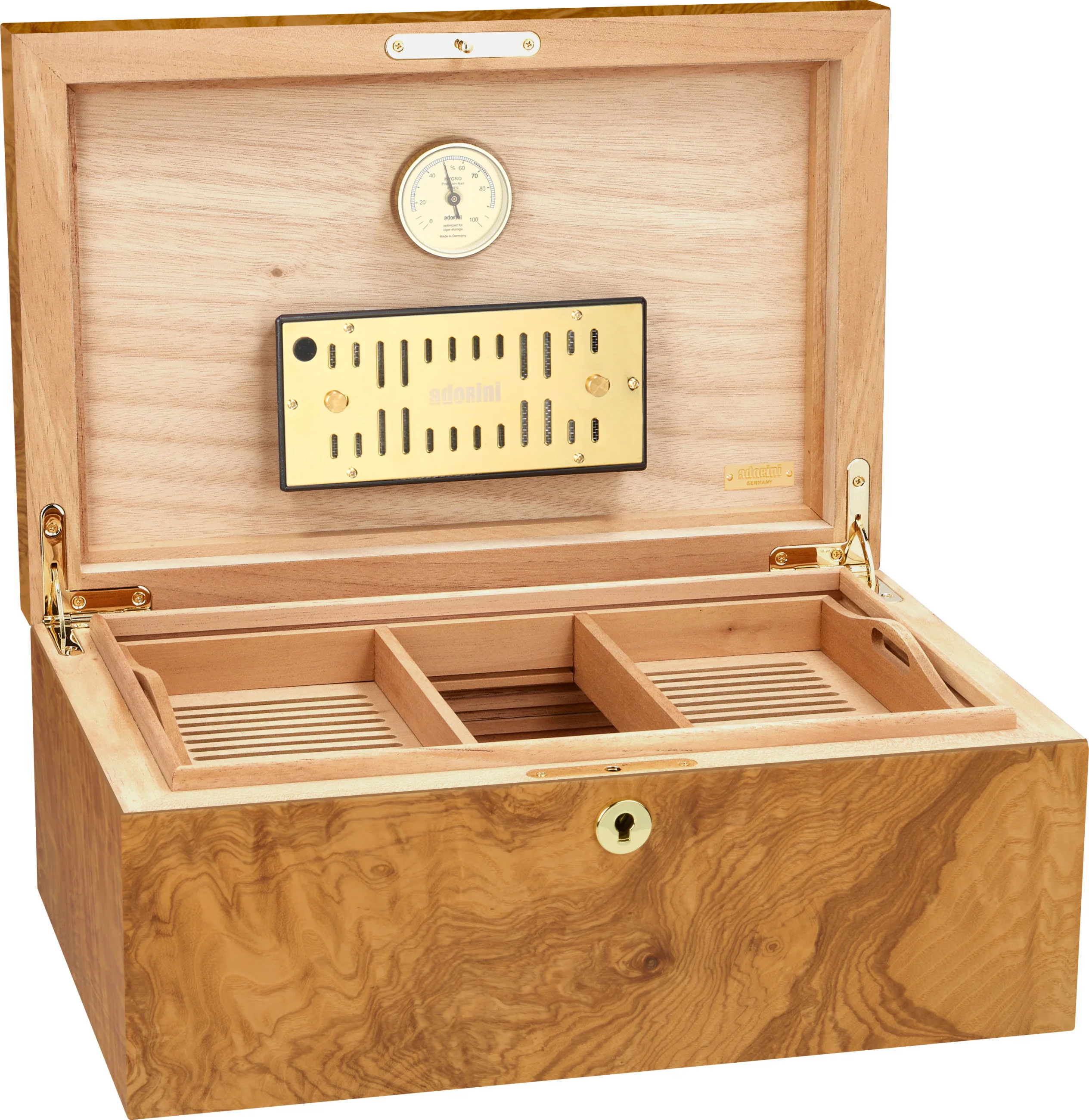 adorini is one of the world's leading brands for humidors. Its products are characterized by high-quality materials, sophisticated design, and innovative functionality. Precise hygrometers and humidification systems from adorini can be found in even the most exclusive humidors in the world. Cigar lovers, restaurateurs, and collectors value adorini for its long-lasting quality, stylish craftsmanship, and reliable precision.