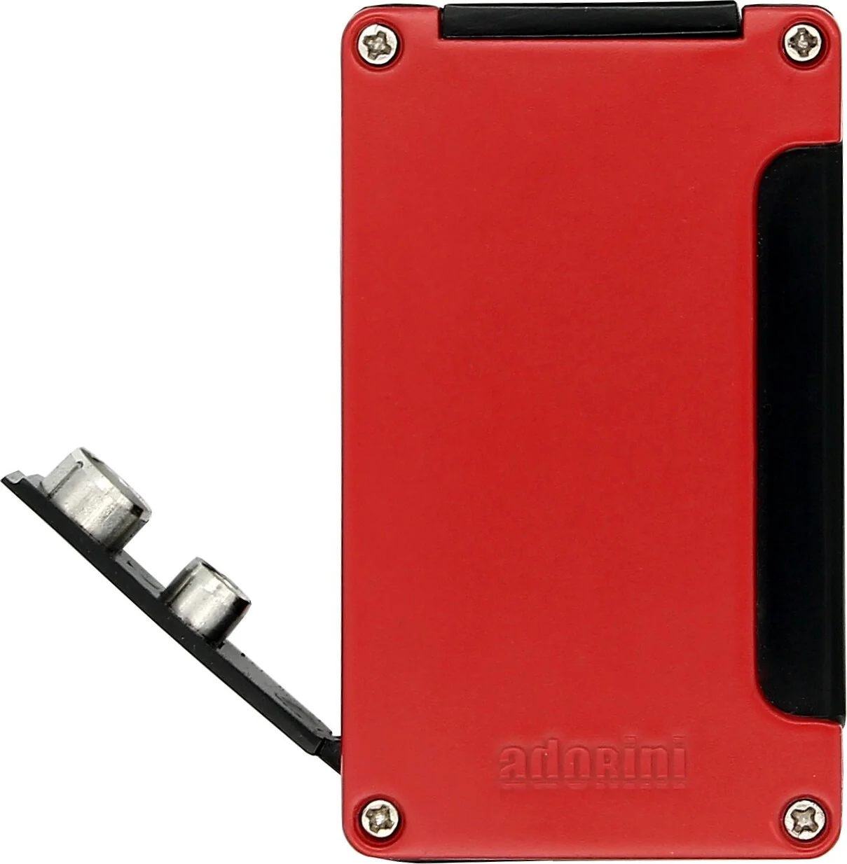 Всего существует шесть цветов на выбор, но ни один не привлекает внимание так сильно, как красный цвет зажигалки adorini Jet. Прочный корпус из нержавеющей стали замаскирован чёрным цветом, а передняя и задняя части привлекают внимание красивым красным лаковым покрытием.