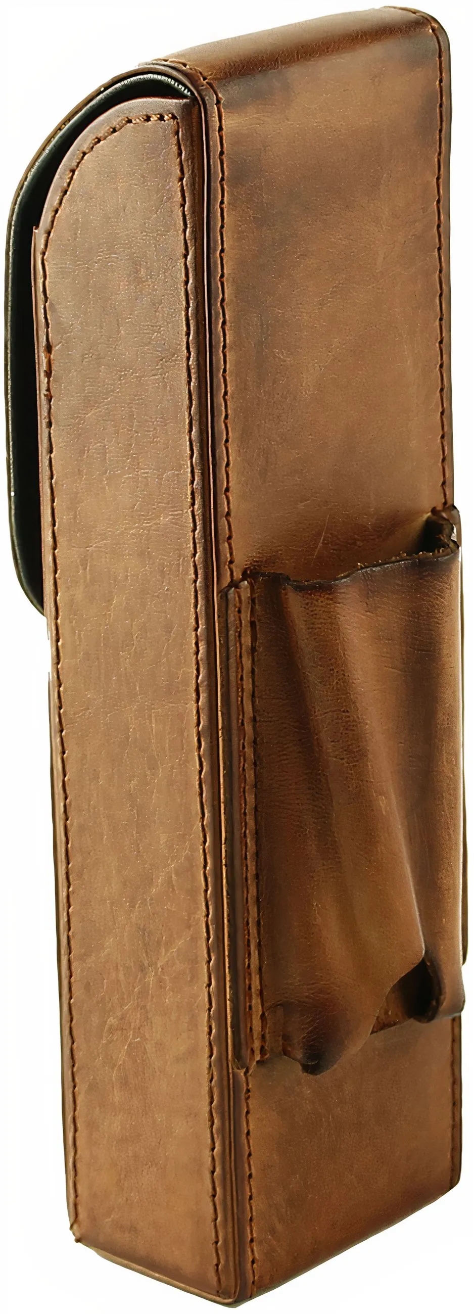 adorini карманный винтажный кожаный портсигар на 2 сигары коричневый с карманом для каттера или зажигалки