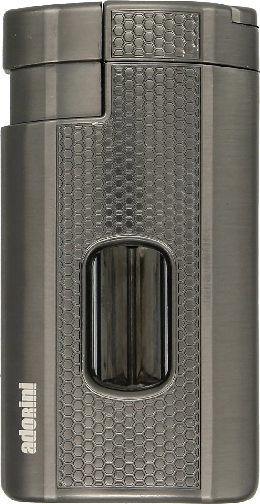 Турбо-зажигалка adorini с тройным пламенем, V-образным резаком, цвет "оружейная сталь".