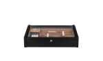 Черная лакированная поверхность прекрасно подчеркивает точные линии прочного хьюмидора, который имеет наклонную верхнюю часть с изящной конструкциейстеклянной крышка, идеально подходящей для просмотра. Облицовка из пропаренного испанского кедра оснащена инновационными вентиляционными ребрами RibTech от adorini, которые помогают увеличить поток воздуха, обеспечивая необходимую влажность для более 75 сигар размера Corona. Пять вертикальных и пять горизонтальных разделителей, система разделителей adorini с ярлыками для разделителей позволяют организовывать сигары множеством различных способов, помогая сделать дисплей Vega Deluxe Хьюмидор любимым местом для работы или отдыха.