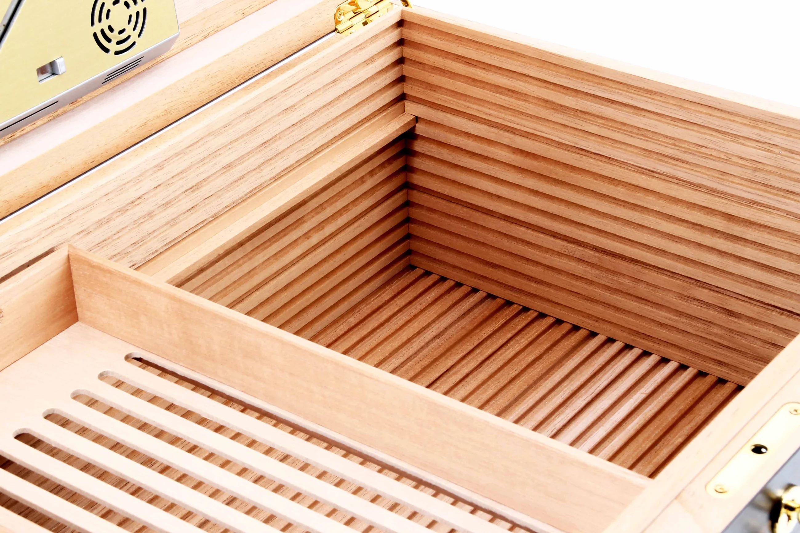Сверхпрочный корпус хьюмидора и сверхпрочная обшивка из испанского кедра.