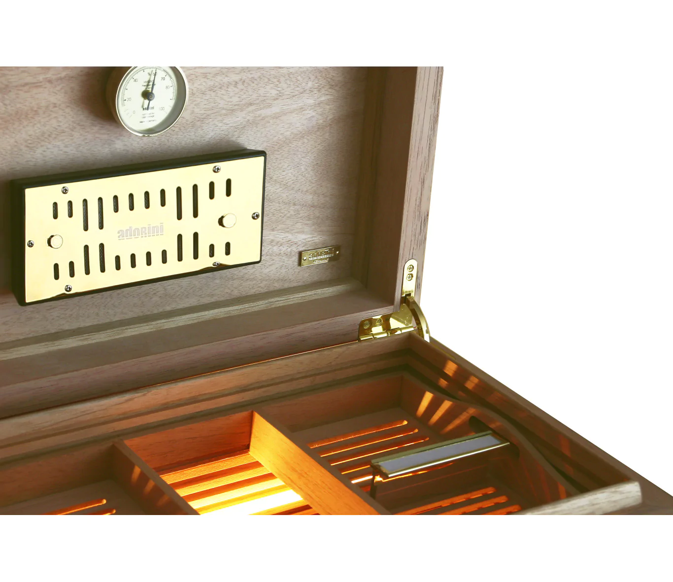 Позолоченный увлажнитель Adorini Deluxe на основе акрилового полимера с регулируемыми вентиляционными отверстиями для оптимального регулирования уровня влажности.