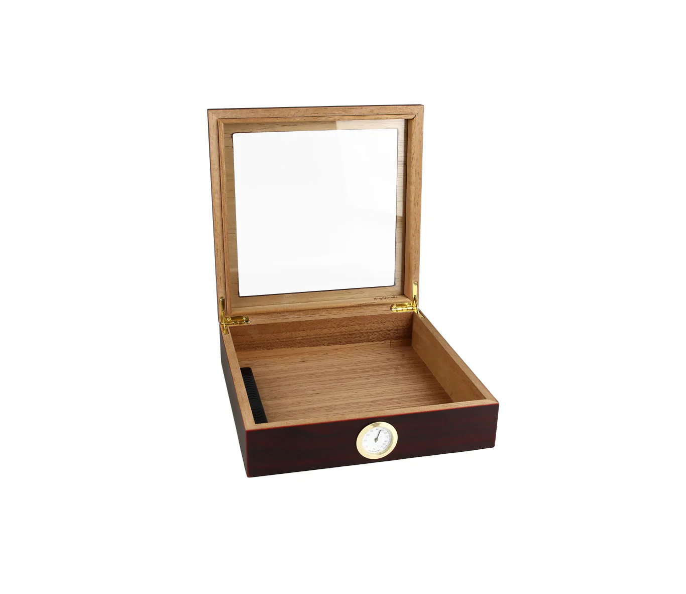 - Дизайн: Хьюмидор оснащен стеклянной крышкой, с которой открывается прекрасный вид на вашу коллекцию сигар. Золотистые петли создают яркий контраст с деревянной отделкой, подчеркивая ее визуальную привлекательность.