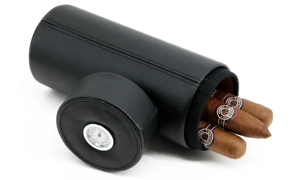 Кожаный тубус для сигар BigSmoke с кедровой отделкой и встроенным гигрометром