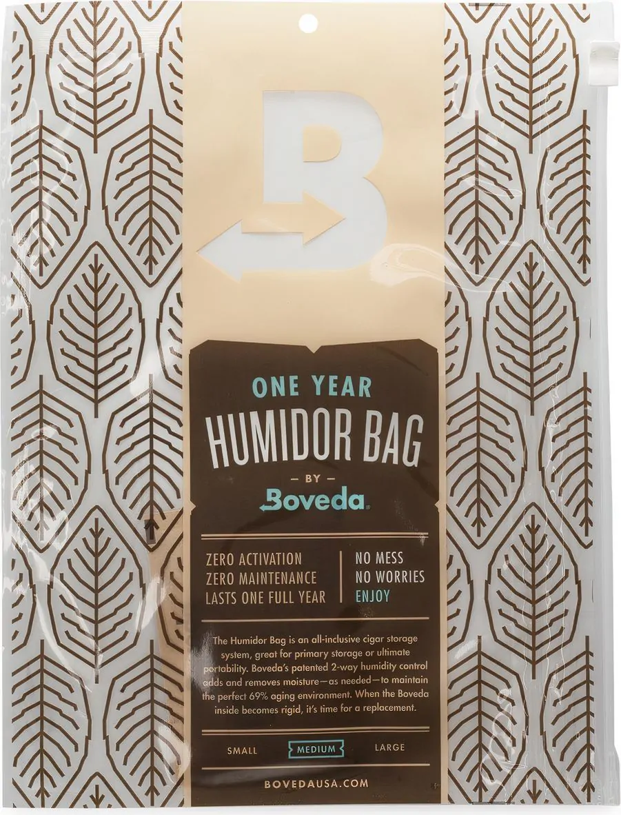 Boveda Humidor пакет среднего размера - это идеальная система хранения сигар по принципу «все включено» с запатентованным двухсторонним контролем влажности Boveda, который не только добавляет влагу, но и удаляет влагу, если она повышается. Размеры 28 х 22,5 см, вмещает от 12 до 15 сигар. В стоимость входит пакет Boveda 69%. Когда внутри Boveda становится жесткой, нужно ее заменить.