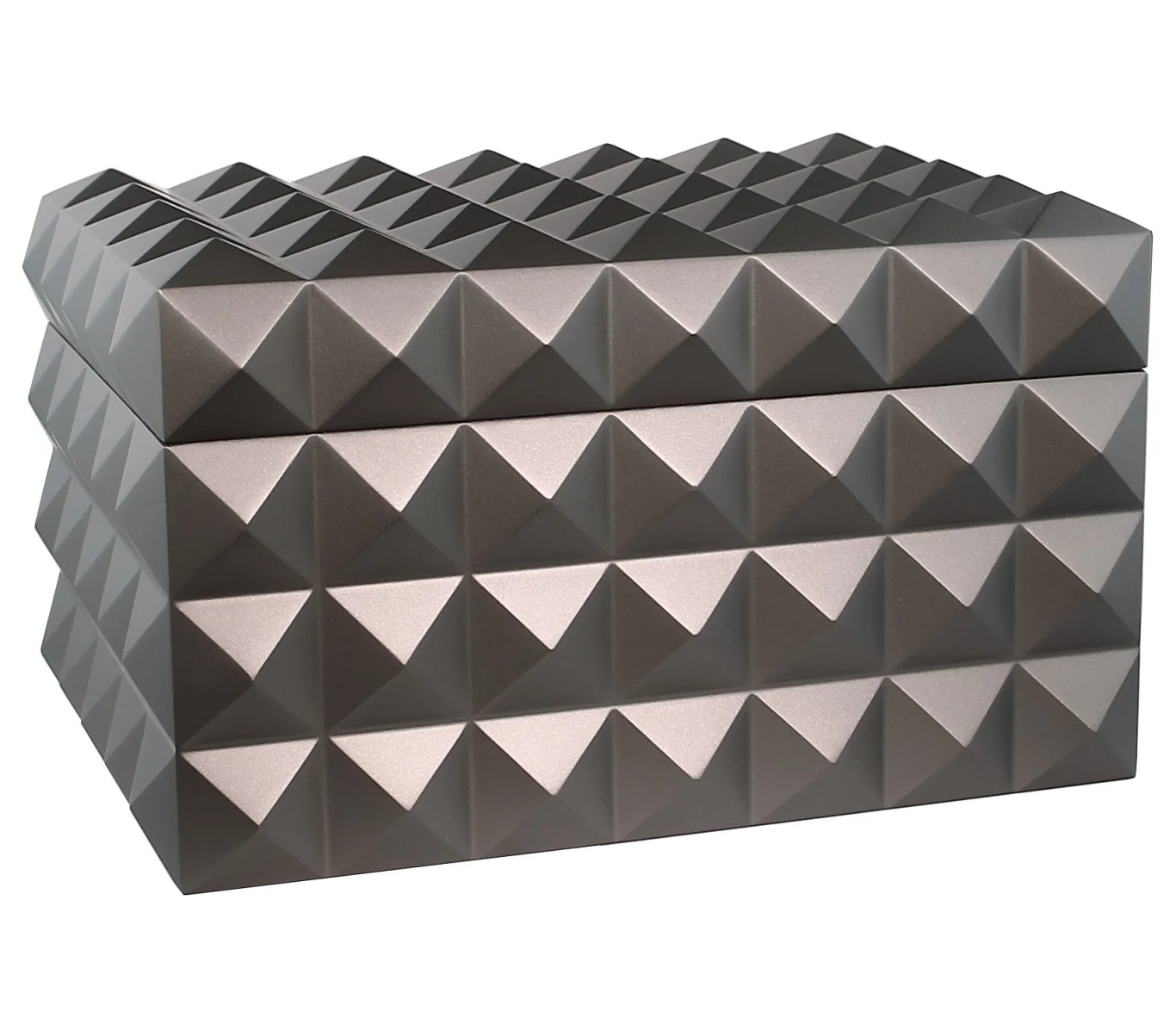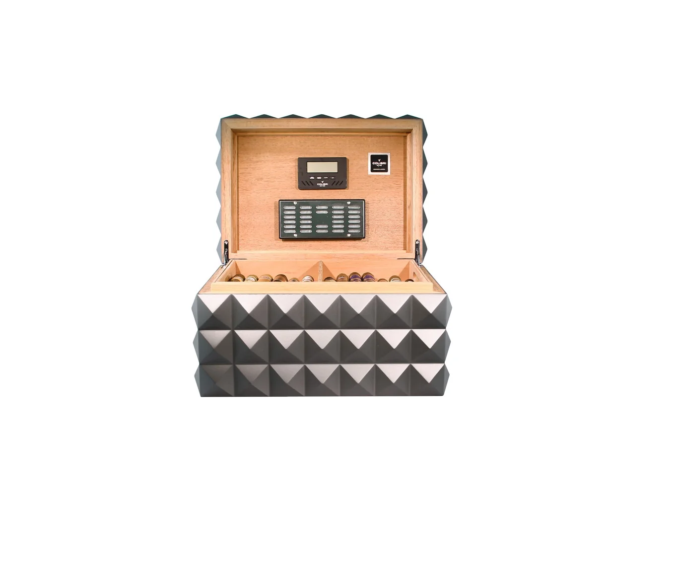 Хьюмидор Colibri Grand Quasar - это исключительный хьюмидор из знаменитой серии Quasar. Его футуристический трехмерный дизайн с пирамидообразными возвышениями привлекает внимание и выделяет его среди классических хьюмидоров. Благодаря своему уникальному стилю он сочетает в себе инновации и элегантность, поэтому станет изюминкой для искушенных любителей сигар.