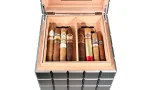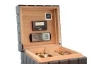 Этот современный, футуристический хьюмидор в форме куба от бренда Colibri впечатляет своим геометрическим дизайном и элегантным антрацитово-серым цветом. Он привлекает внимание и придает стиль и элегантность любому помещению. Хьюмидор вмещает около 60 сигар и впечатляет продуманным дизайном интерьера.