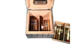 Внутреннее пространство разделено на две зоны: съемный уровень для хранения отдельных сигар, который оснащен гибкой вертикальной перегородкой для лучшей организации. В нижней зоне можно хранить и небольшие коробки с сигарами, поддерживаемые еще одной гибкой перегородкой.