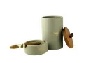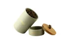 - Фарфоровый сосуд с высококачественной деревянной крышкой и стильной кожаной ручкой.