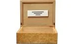 Особенности этого хьюмидора - это потрясающий натуральный корневой шпон с блестящей глянцевой поверхностью. Интерьер облицован испанским кедром, что обеспечивает идеальные условия для 35 сигар размером Corona. Петли премиум-класса с распоркой позволяют легко открывать и закрывать сигары, а разделитель помогает улучшить организацию сигар.