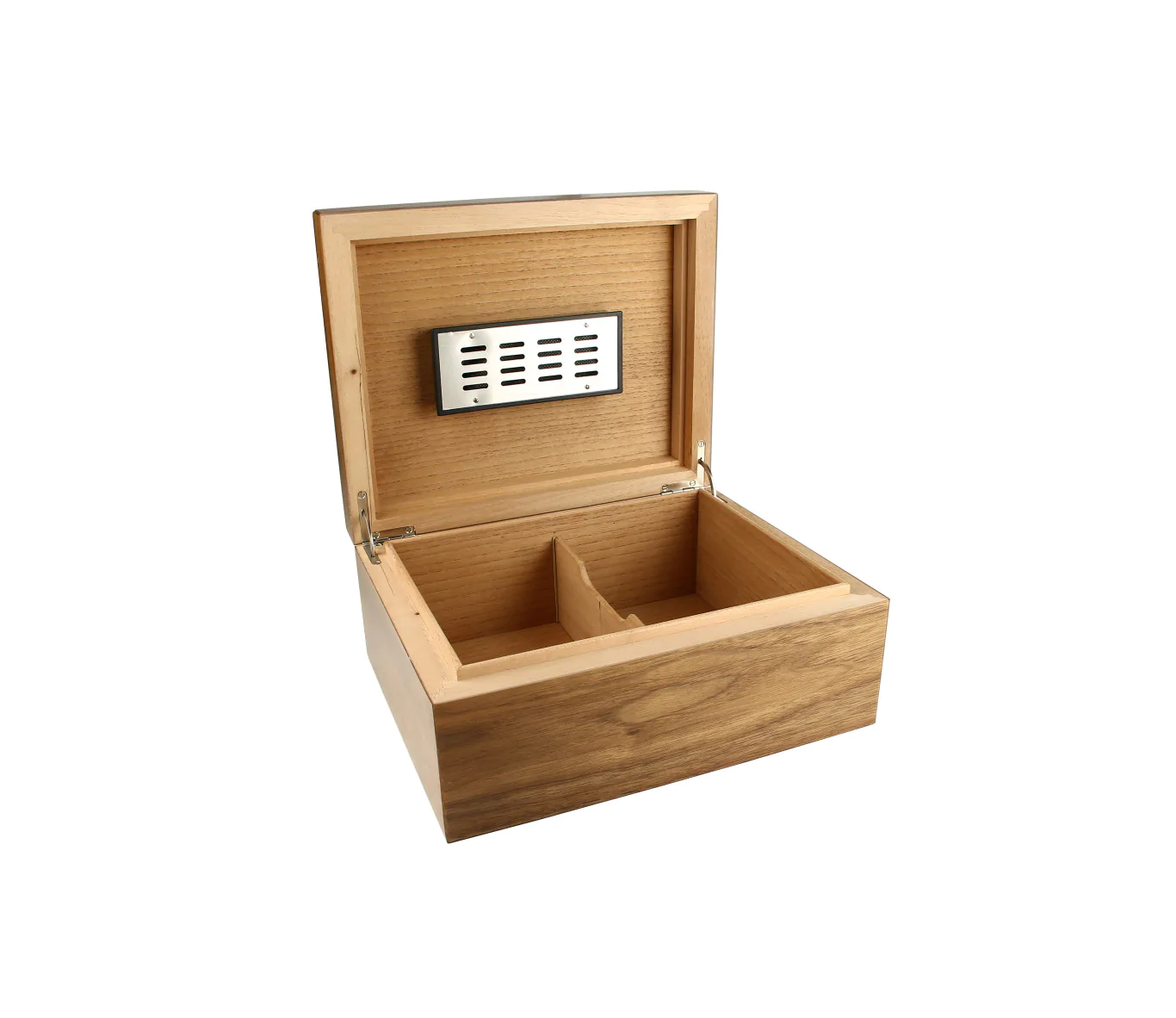 - Привлекательная ореховая древесина: Хьюмидор изготовлен из орехового дерева, искусно покрытого матовым лаком, чтобы подчеркнуть его естественную красоту.