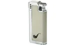 Удобная зажигалка для трубки цвета шампанского с блестящими декоративными элементами серебристого цвета - идеальный вариант для курильщиков трубки. Отпечаток трубки на корпусе делает зажигалку сразу узнаваемой. Боковой поджиг позволяет легко и безопасно зажигать трубку, не обжигая пальцы.
