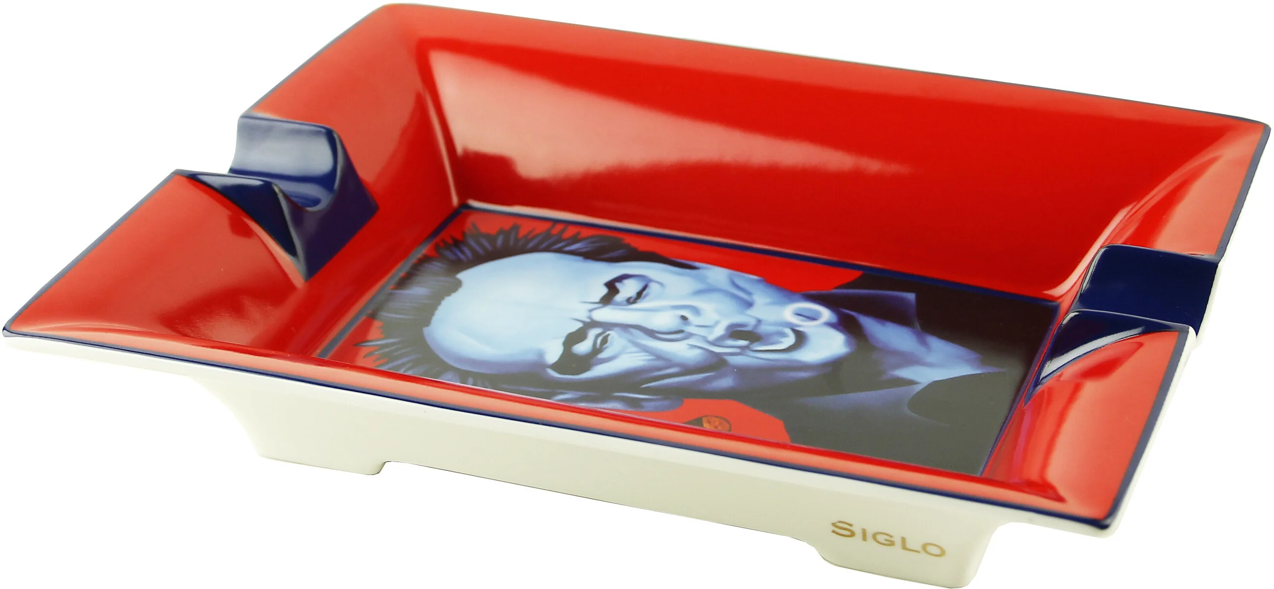 **Siglo Ashtray Jack Nicholson** - это яркая **пепельница** для сигар, выполненная в ярких красных и синих тонах, с культовым изображением Джека Николсона, пускающего кольца дыма с сигарой в руке. Известный своей пожизненной связью с сигарами, Николсон олицетворяет искусство наслаждения сигарами. Эта необычная пепельница делает смелое заявление и привлекает внимание без особых усилий.