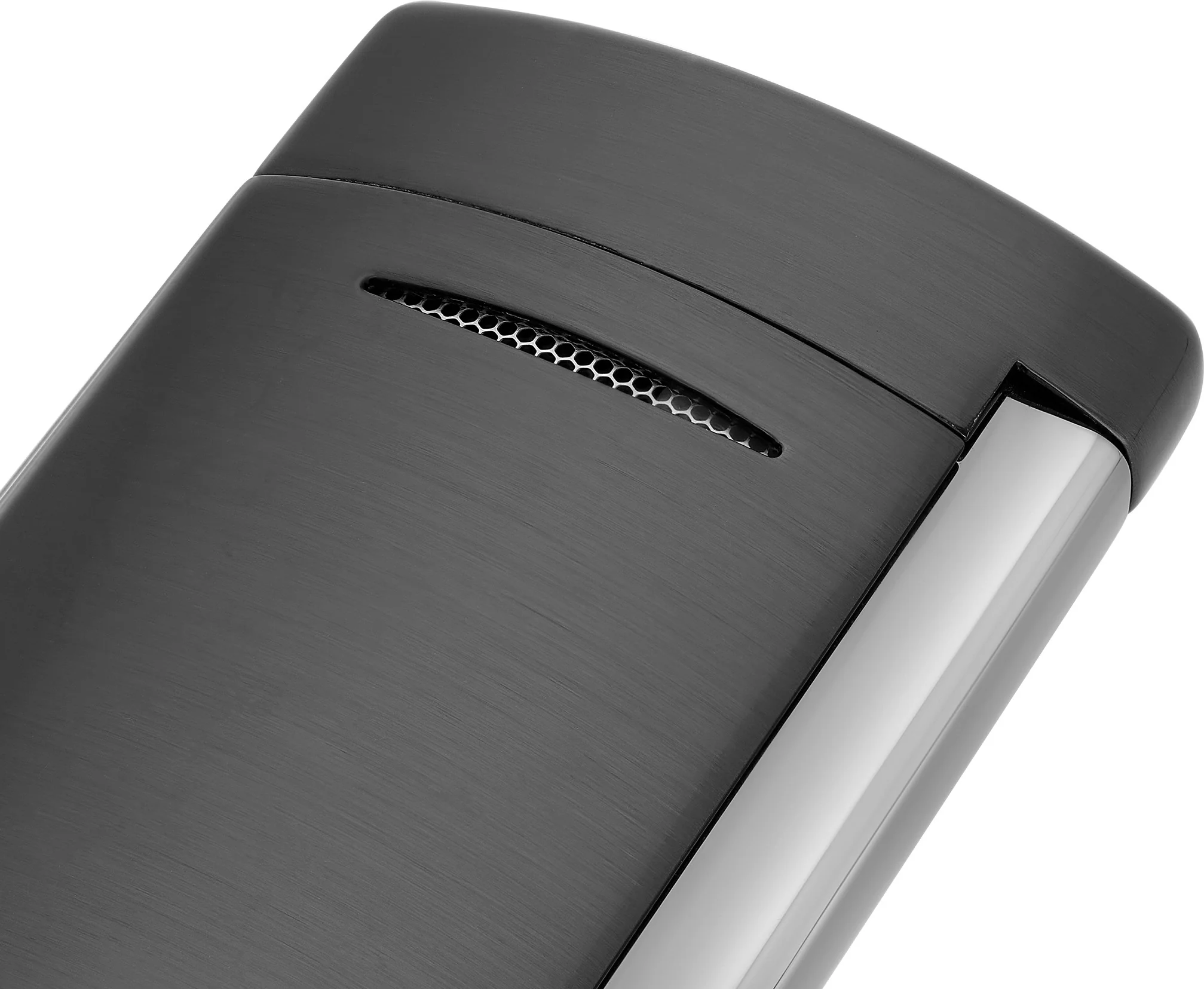 Зажигалка S.T. Dupont Minijet матового тёмно-серого цвета с блестящими акцентами - это изысканная и удобная зажигалка, которая впечатляет мощным реактивным пламенем и электрическим пьезоподжигом. Матовая поверхность с акцентами из полированного хрома делает ее стильным аксессуаром для повседневного использования.
