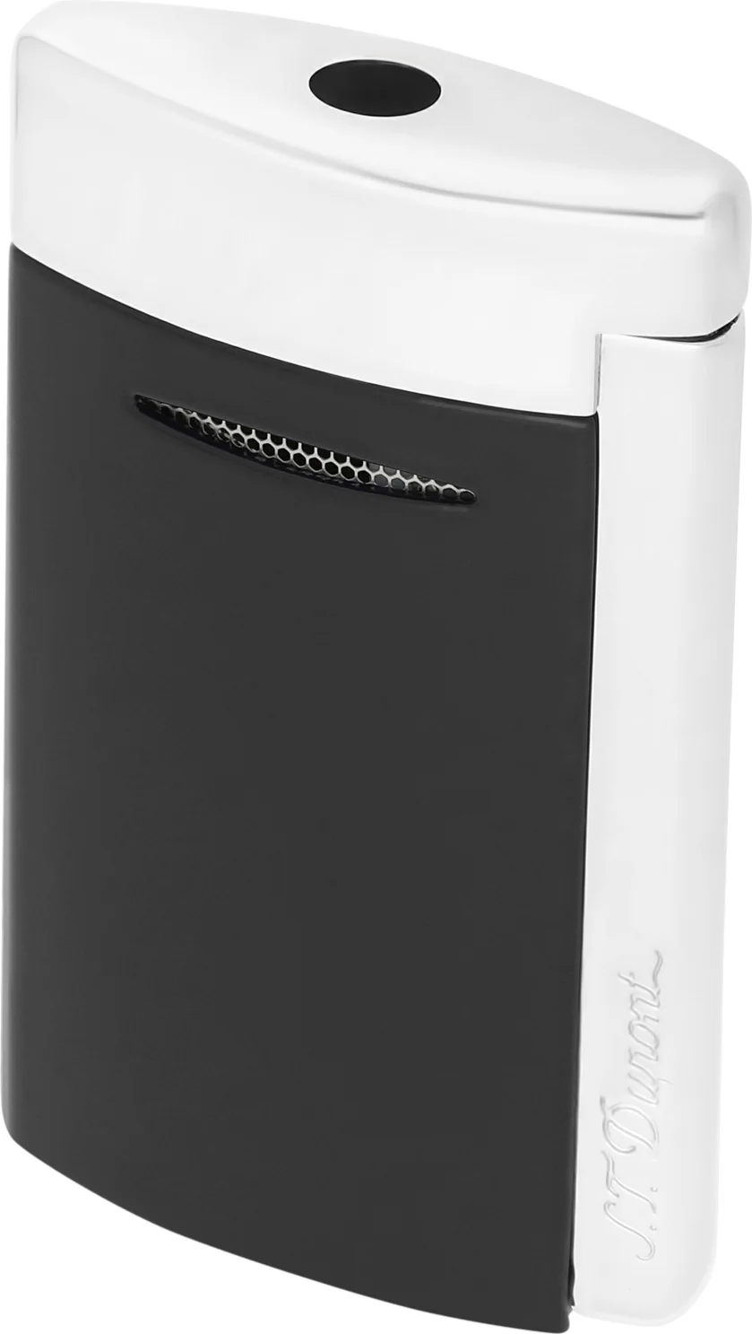 Зажигалка S.T. Dupont Minijet матово-черного цвета с хромированными акцентами - это изысканная и удобная зажигалка, которая впечатляет мощным реактивным пламенем и электрическим пьезоподжигом. Черная отделка с полированными хромированными акцентами делает ее стильным аксессуаром для повседневного использования.