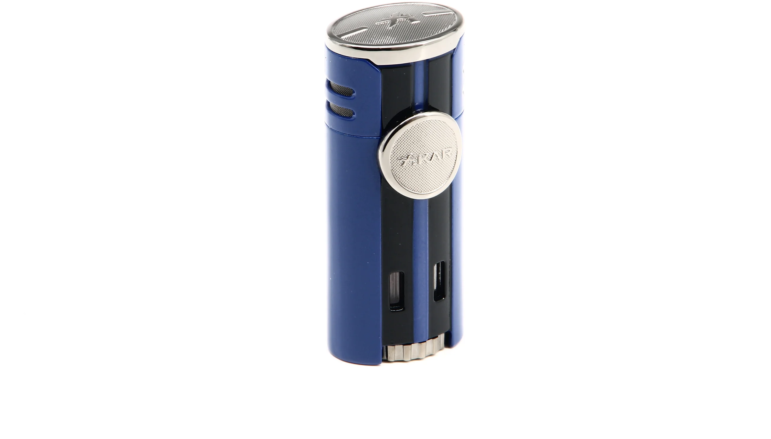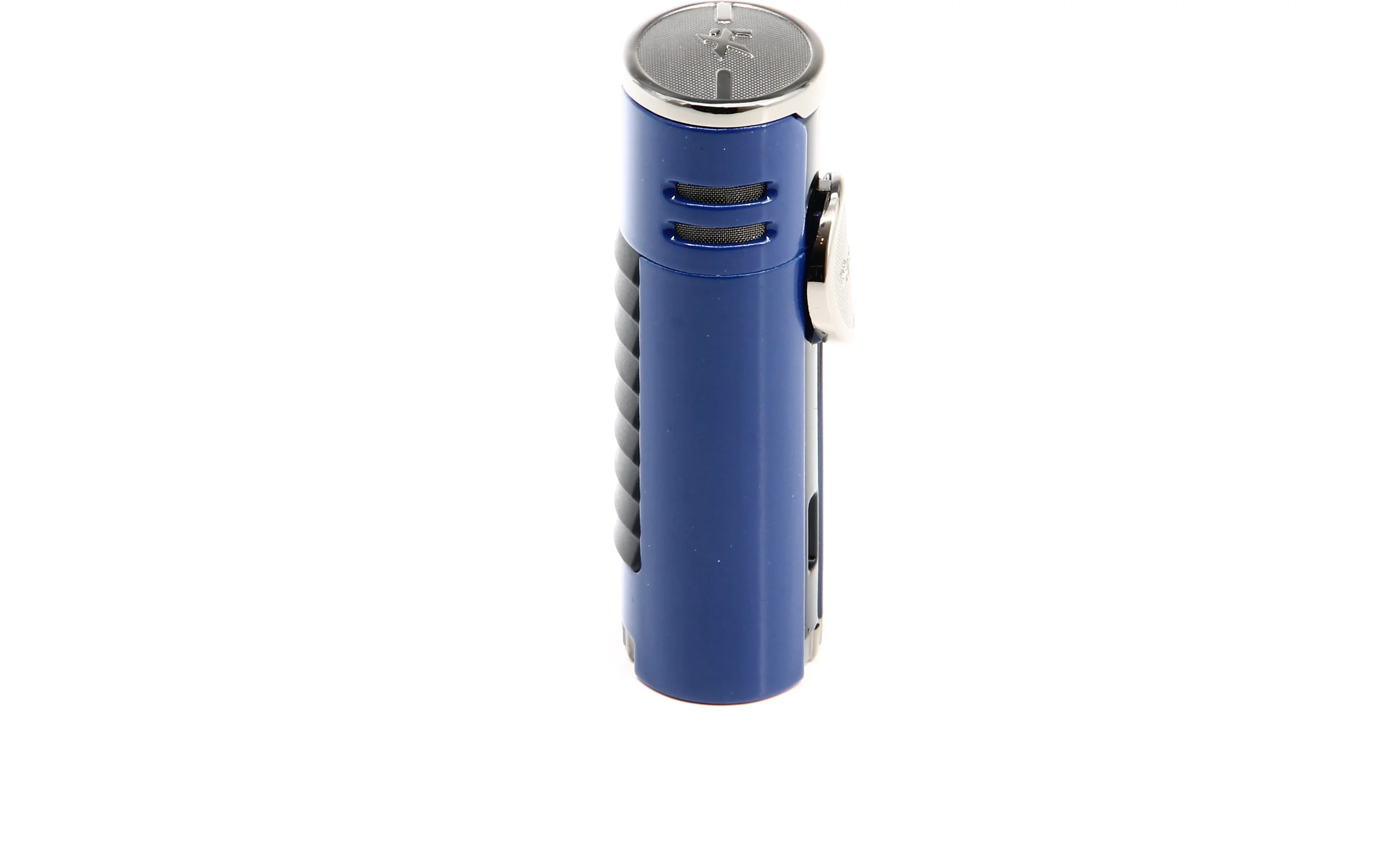 Эта зажигалка Xikar HP4 Quad сразу бросается в глаза яркой синей отделкой, подчеркнутой хромированными элементами. Напоминающая суперкары, вдохновившие на дизайн зажигалки, жалюзийная задняя панель добавляет изюминку глянцевому и современному виду.