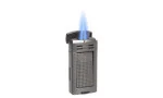 - Ветрозащитное двухструйное пламя, в котором пламя сужается друг к другу, обеспечивая точное и безопасное прикуривание сигары без случайного почернения обертки.